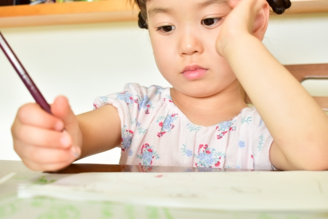 また、ぬりえやお絵描きをして筆の運びの練習をしておきましょう。